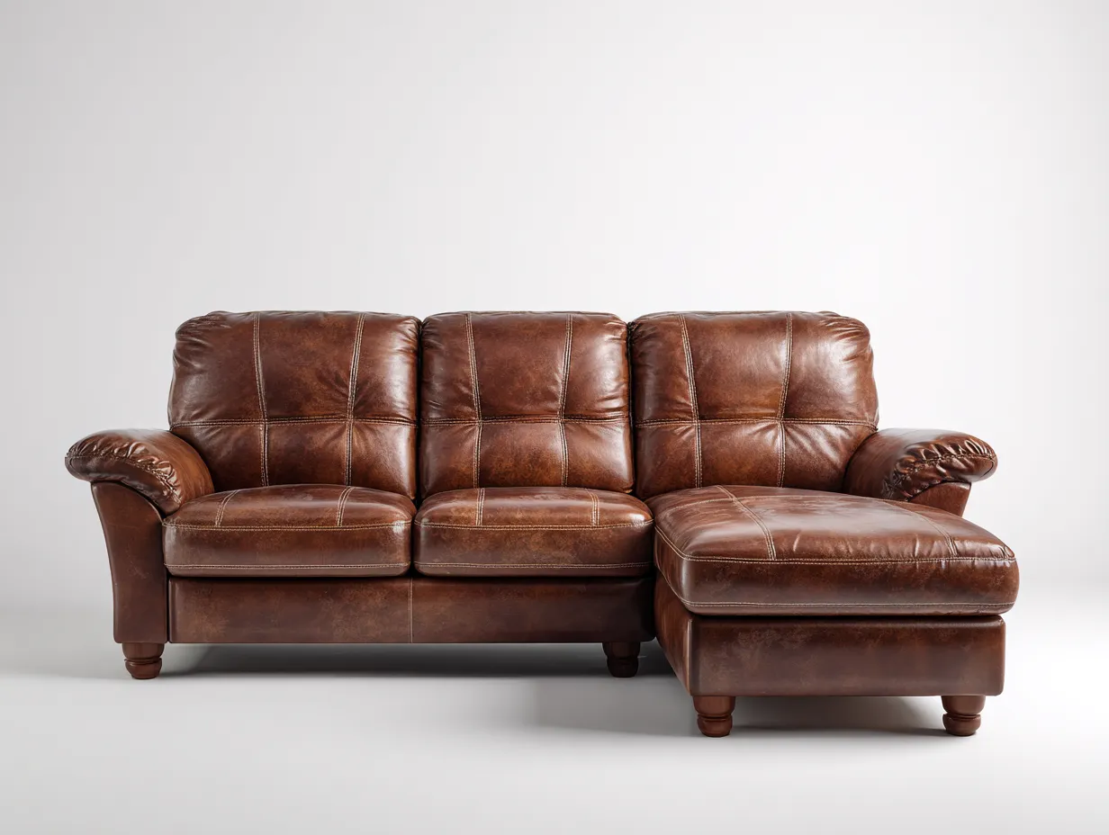 Divano angolare - Pelle-Legno - 245x160x80 cm - Marrone - Stile classico