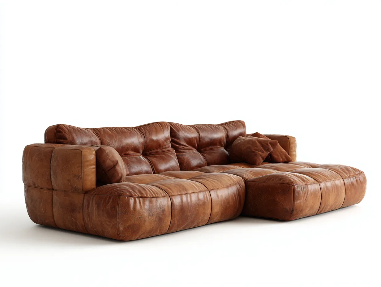 Divano angolare - Pelle - 270x165x78 cm - Marrone - Stile moderno