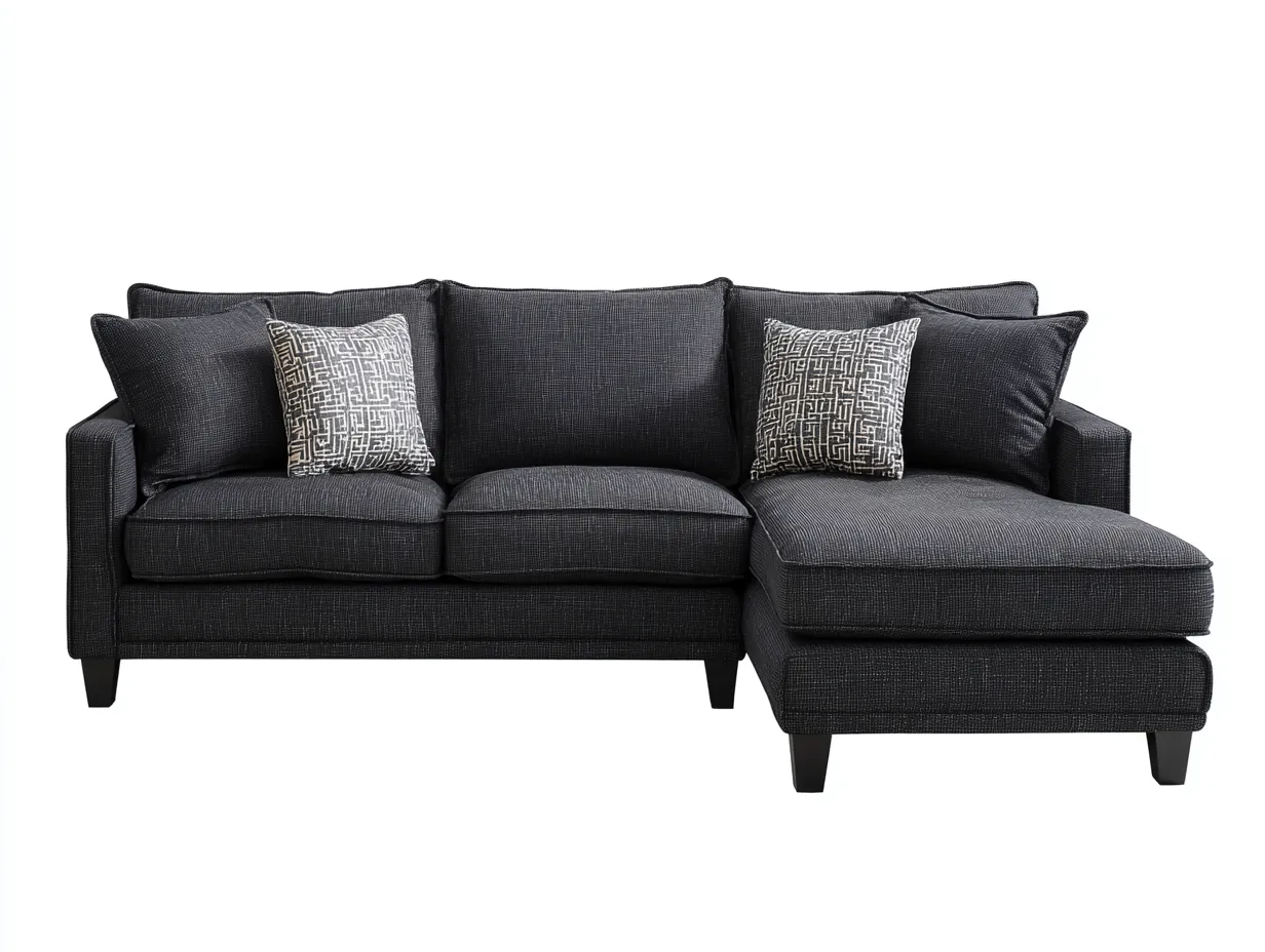 Divano angolare - Tessuto-Legno - 255x165x82 cm - Nero - Stile moderno