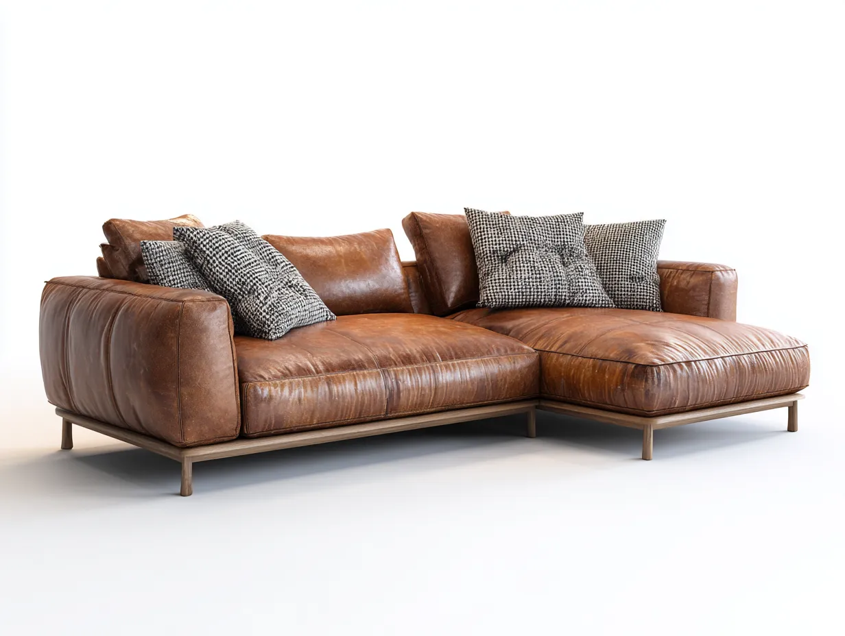 Divano angolare - Pelle-Legno - 255x170x80 cm - Marrone - Stile contemporaneo
