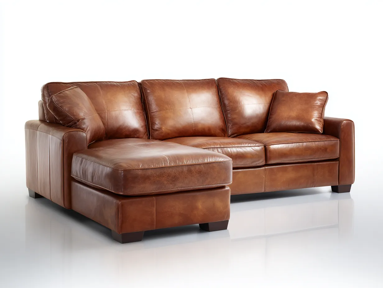 Divano angolare - Pelle-Legno - 265x170x80 cm - Marrone - Stile contemporaneo