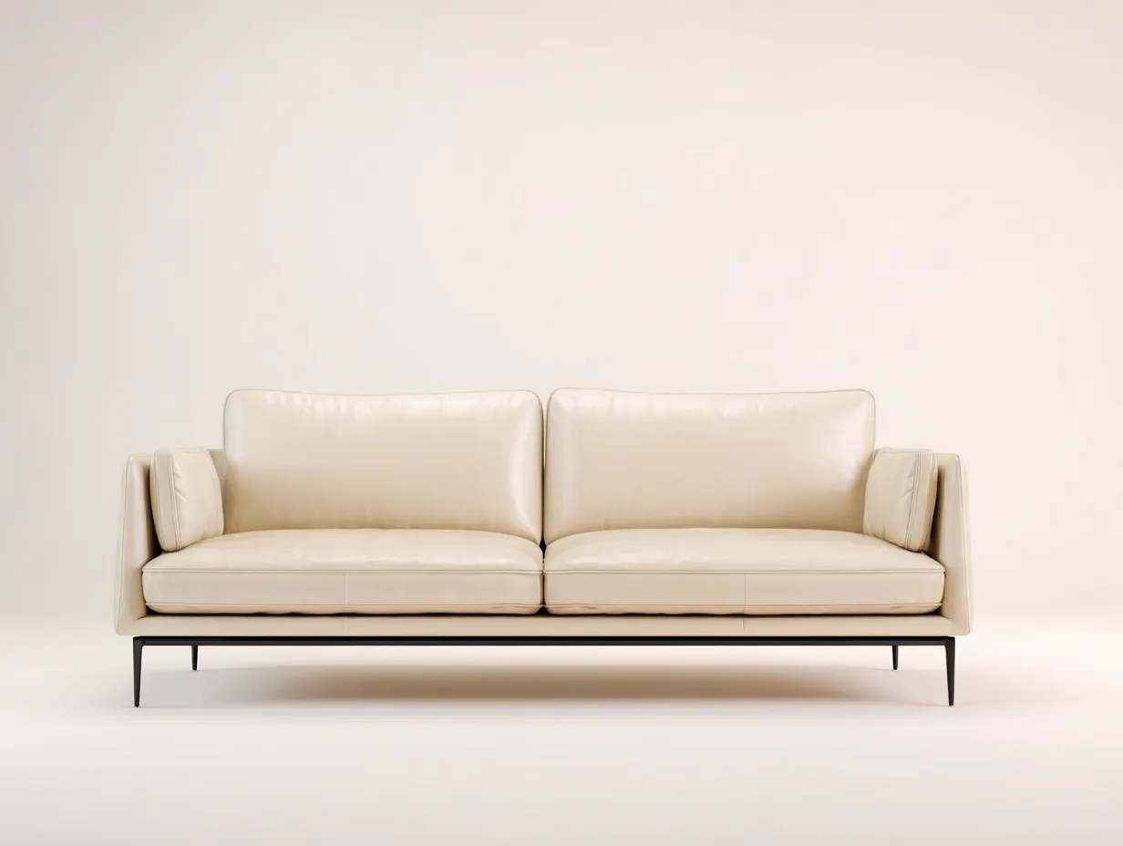Divano a due posti - Pelle-Metallo - 185x90x82 cm - Beige - Stile moderno