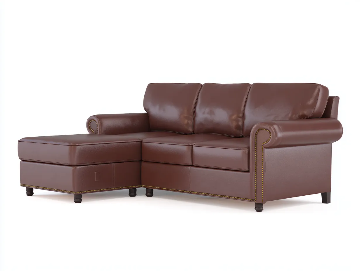 Divano angolare - Pelle-Legno - 245x160x80 cm - Marrone - Stile classico