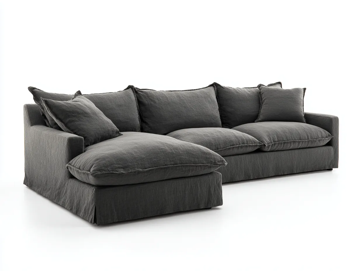 Divano angolare - Tessuto-Legno - 270x175x78 cm - Grigio scuro - Stile moderno